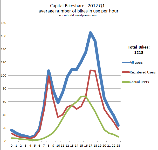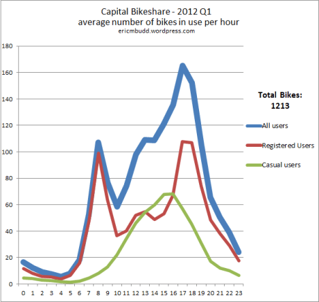 The first look – all days, all users [and subdivided between annual/casual users] uses data from 2012 – January first through March 31st: