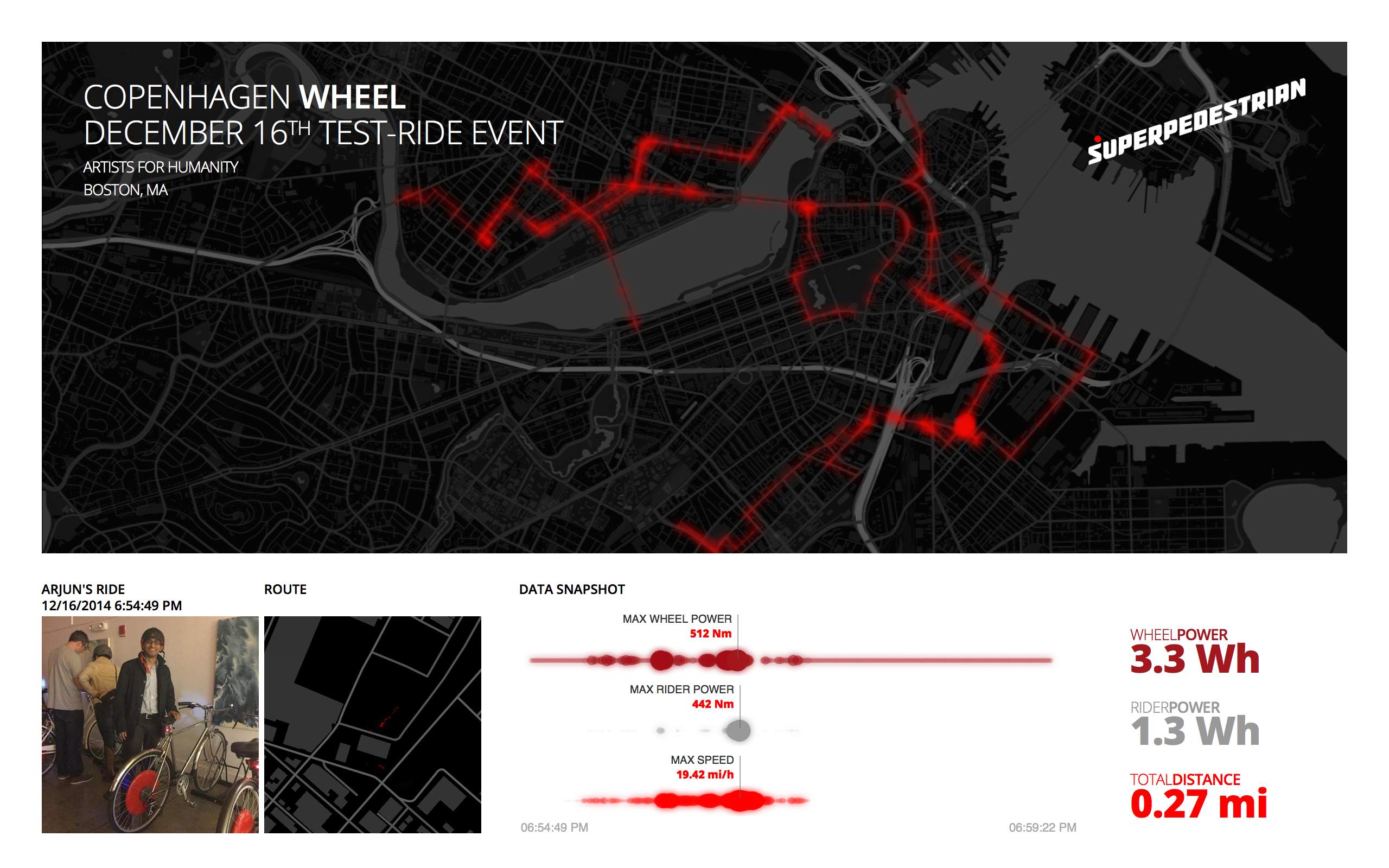Here’s a screenshot from data captured at a recent test event for the Copenhagen Wheel, an add-on for regular bikes that converts them into electric-assist bikes. Newer e-bikes have sophisticated power measurement techniques that can isolate the human-powered component, which Strava could use just as if the rider had a built-in power meter.