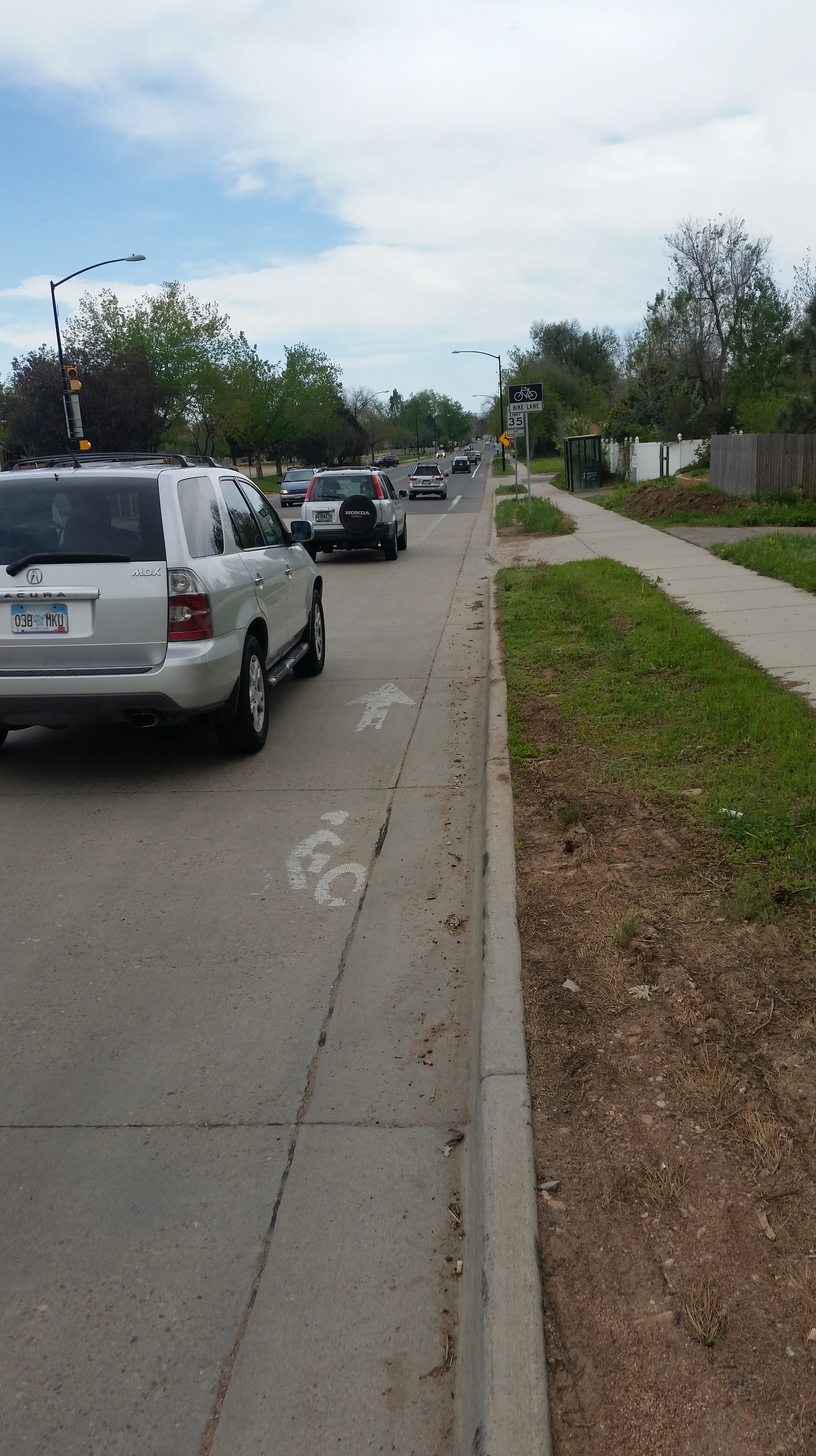 I want to analyze the current conditions of one of these roads I bike on ~500 times per year (approximately twice every workday), Iris Avenue in North Boulder. On Saturday, May 2nd, I spent an hour photographing the corridor.