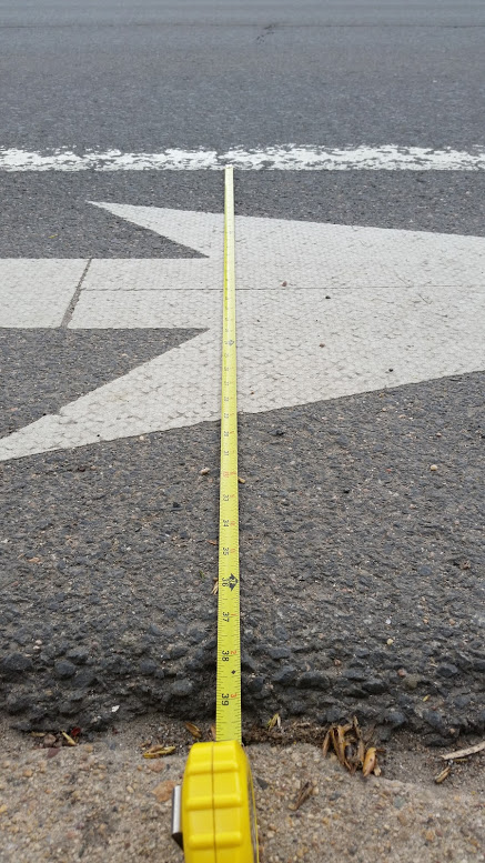This portion of the bike lane is only 39″ wide.