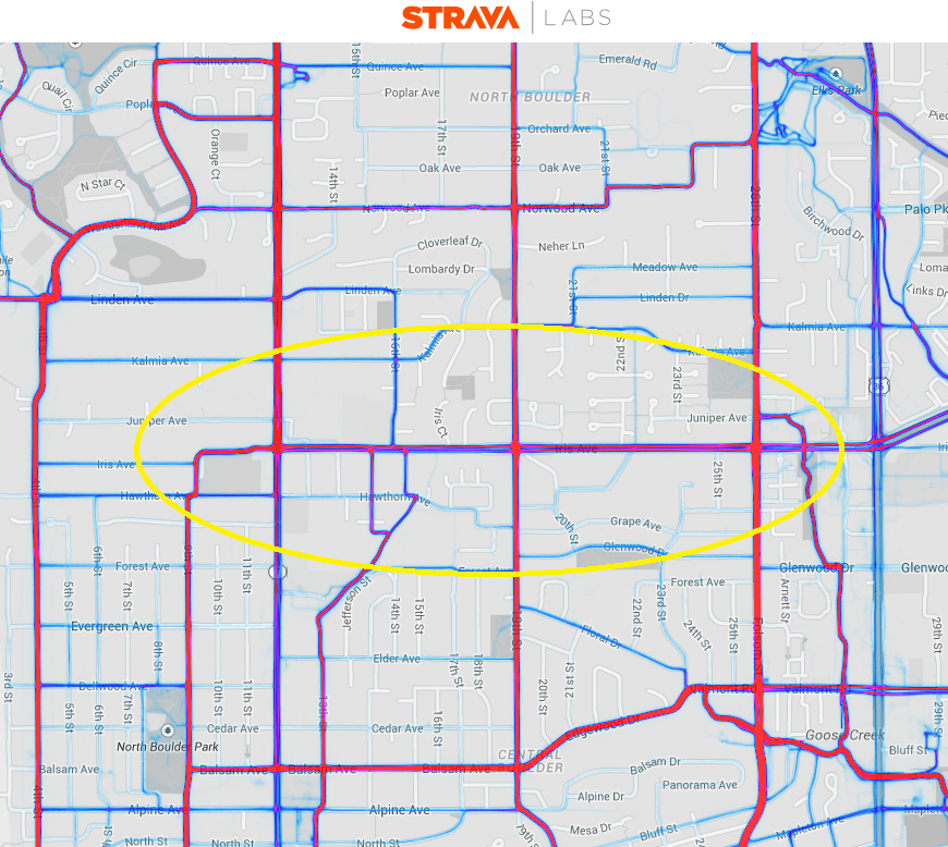 Strava Global Heatmap (Boulder, Colorado)